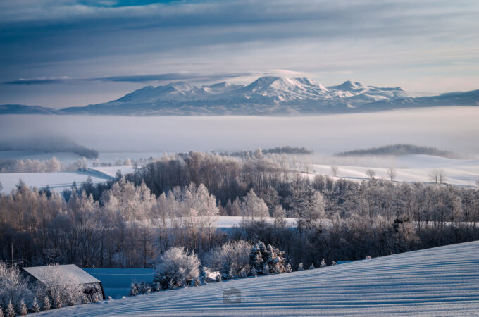 北海道最高峰、大雪山系旭岳。アイヌ語で『カムイミンタラ』神々の遊ぶ庭という意味です。凍てつく白銀の世界にその存在感を知らしめる光景...